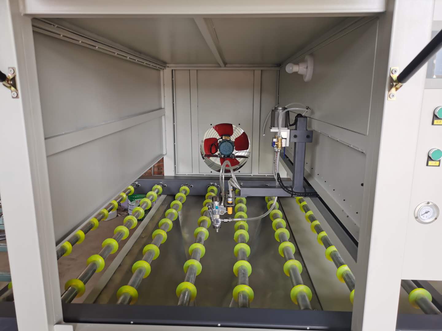 廣泛用于晶瓷畫(huà)、裝飾畫(huà)、相框、玄關(guān)三聯(lián)畫(huà)、高光移門(mén)、瓷磚背景墻、塑料件、PVC板、塑鋼型材、不銹鋼板、櫥柜木板、竹木纖維板、護(hù)墻板、工藝品、人造石等各種單面或多面產(chǎn)品,同時(shí)帶有凹凸挖槽造型產(chǎn)品均可涂裝(可配整線(xiàn)及工藝),可噴涂各種AB膠、水晶釉、UV光油、UV涂料、各種水性漆、色漆、各種樹(shù)脂等材料,該設(shè)備體積小,制作精良,移動(dòng)方便。